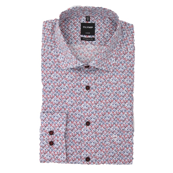 Die Kombination nachhaltiger Baumwolle-Lyocell-Fasern und die mit OLYMP Expertise daraus hoch entwickelten bügel- sowie knitterfreien Texturen spielen die Hauptrolle in der Linie OLYMP Luxor modern fit Businesshemden. Dabei hat sich im heutigen Geschäftsalltag auch der Dresscode erweitert. Das attraktive, von portugiesischer Pflasterkunst inspirierte Grafik-Allover lässt sich hervorragend zum Businessanzug kombinieren oder dank des weltoffenen Global Kents und einer leicht taillierten Silhouette sportlich elegant als modisch individuelles Statement im Homeoffice einsetzen.