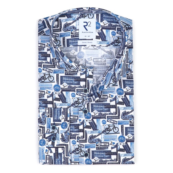 Ein Hemd mit typischer R2 DNA. Print mit Motiven aus Amsterdam, wie immer in einer bekannt fantastischen Baumwollqualität. In Modern-Fit geschnitten, hat dieses Hemd durch seine außergewöhnliche Detailverliebtheit Potenzial zum neuen Lieblingsstück.