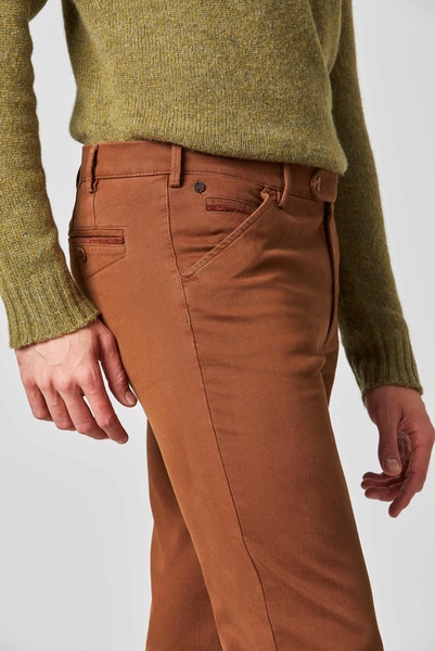 Die coole Chino ist mit allen typischen MEYER Details ausgestattet wie etwa dem aufwendig verarbeitete Innenfutter und der Sicherheitstasche im linken Taschenbeutel. Super Stretch sorgt dafür, dass die Hose selbst am Knie nicht beult und immer wieder in ihre Ursprungsform zurückgeht. Casual Canvas in Bio-Baumwolle unterstreicht die legere Ausstrahlung.