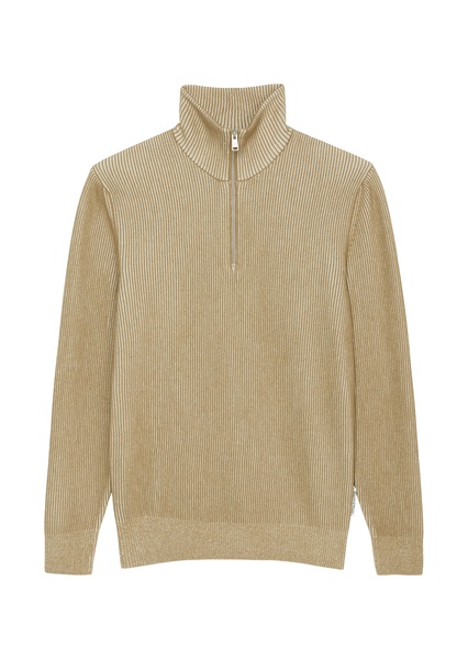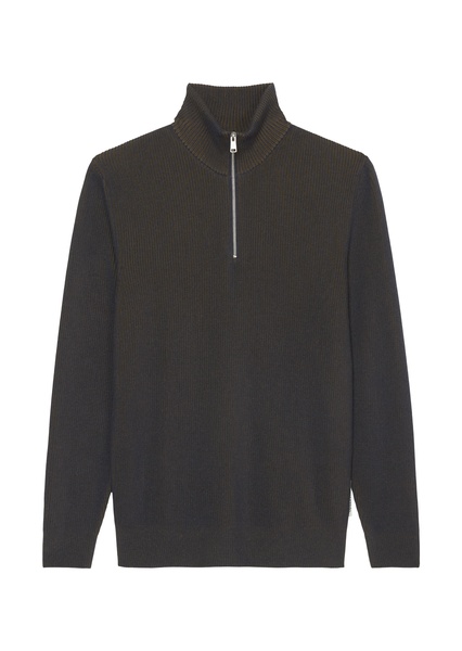 Dieses Oberteil der Marke Marc O'Polo besitzt dank des hohen Anteils an Schurwolle ein besonders angenehmes und bequemes Hautgefühl mit komfortabler Passform. An den Abschlüssen befinden sich gerippte Bündchen, wodurch ein zuverlässiger Sitz gewährleistet wird. Der Zipper an der Vorderseite lässt sich bis zum oberen Kragenrand verschließen, sodass an kühleren Tagen auch der Hals einwandfrei gewärmt wird. Das Webmuster ist sehr akkurat und verleiht dem Troyer ein ordentliches und eindrucksvolles Erscheinungsbild, das sich zu verschiedenen Anlässen zeigen lässt.