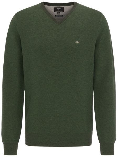 Lässig geschnittener V-Kragen Pullover mit gesticktem Logo auf der Brust.