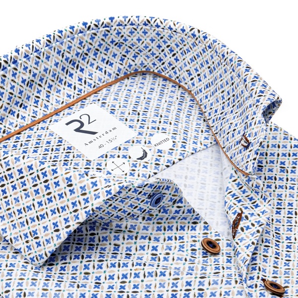 Es ist besonders bequem, da das Material dehnbar und weich ist. Dadurch passt es sich dem Körper besser an und ermöglicht mehr Bewegungsfreiheit als gewebte Hemden. Außerdem ist es pflegeleicht, knitterarm und atmungsaktiv. Es ist ideal für lange Tage oder Reisen. Optisch wirkt es zudem durch den ansprechenden Print sportlich-elegant und lässt sich vielseitig kombinieren.